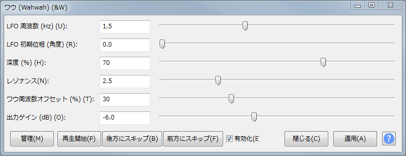| 深度(%):この値が高いとはっきり揺れている感じになり、低いと揺れがあいまいになります。 |