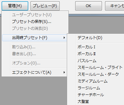 読み込んだら『プレビュー』でエフェクトを掛けた場合の試聴ができます。