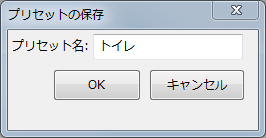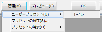 ユーザープリセットから選択可能。いくつでも登録できます。消したい時は「プリセットの消去」で。 |