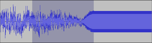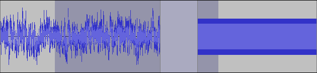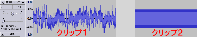 このエフェクトは2つの音の終わりと始まりをフェードで結合させます。![]() 1つのトラック内にこんな感じで2つのクリップ(別々の音)があるとします。
