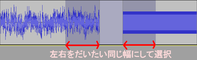 これをただ並べてくっつけるのではなく、前の音の終わり部分と次の音の始め部分を重ね合わせてくっ付けたい時に使います。やり方は重ね合わせたい部分をだいたい同じ位の幅で選択して、エフェクトのクロスフェード:クリップを選ぶだけです。設定とかはありません。 ![]() ![]()