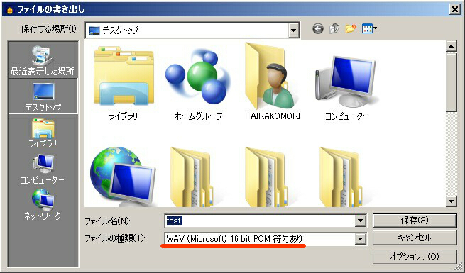 3 声を録音する時は、マイクにハンカチや薄いスポンジなどをかけて息が吹きかかるのを防ぐ。 マイクに風圧は禁物です。感度の悪いマイクではどうしても直近で声を出さざる得ないので、そういう時は少し離れるかハンカチや薄いスポンジなど風を防いでください。 4 高音質設定(WAV)で保存する。 「ファイル」→「書き出し」 ![]() 録音した音をMP3で保存すると、最高音質の320kbpsでも若干音が劣化します。ネットで配布する際はそれで良いでしょうが、PCに素材データとして保存する場合は無劣化のWAV形式で保存すべきです。ただWAVだとファイルサイズが大きくなります。HDDの容量が気になる場合は大切なものだけWAV、そうでないものはMP3(もしくは他の圧縮形式)で保存するという方法もあります。 最後に マイク(声)に関しては正しい使い方をしないと宝の持ち腐れになります。勉強になるので下のリンクも読んでみてください。 http://remivoice.jp/vocal-technics/mike.html http://www.wer.sakura.ne.jp/mic.htm 個人でよい音を録るには、いっそのことPCマイクに見切りを付けてリニアPCMレコーダー 最近のレコーダーは性能が良く、音質という点では安物のPCマイクより遥かに優れています。選ぶ基準は、サンプル音がHP上に置いてあるメーカーが良いです。スペックだけだと分かりづらいので。 あと、音を編集する際のヘッドフォンもそれなりのものを使いましょう。景品みたいな余りに安物のヘッドフォンだと良い音も悪い音もみんな悪い音に聞こえてしまいます。 声を録音する人は声を加工して遊ぼう!のページも覗いてみてください。面白いですよ!