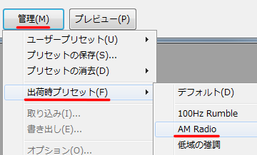 まず、前のページの「電話の声を作る」を参考に、「AM Radio」のカーブを出してください。