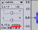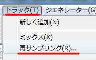 うーん、まだなんとなく高音質な感じです。ですので、Hz(ヘルツ)を下げて、さらに音質を落とします。トラックを選択した状態で、「トラック」→「リサンプリング」で周波数(Hz)」を最低の8000に。