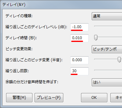 ピッチを変える場合は、元音を先に変えるか・ディレイ掛けた後に変えるか、二通りあると思います。自分でいろいろ試してみて下さい。