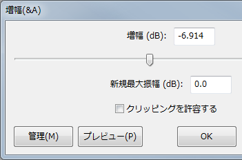 エフェクトを掛けると上のようになります。このままだと波形が大きすぎて音割れするので、エフェクト→増幅 |
