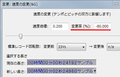 素振りを早くしたい場合は、作った音に再びスピードの変更をかけて、今度は早くしてみて下さい。