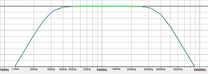 電話の音声周波数帯域である300〜3400Hz以外の部分の音域が、下げられているカーブが出てきます。で、OK。